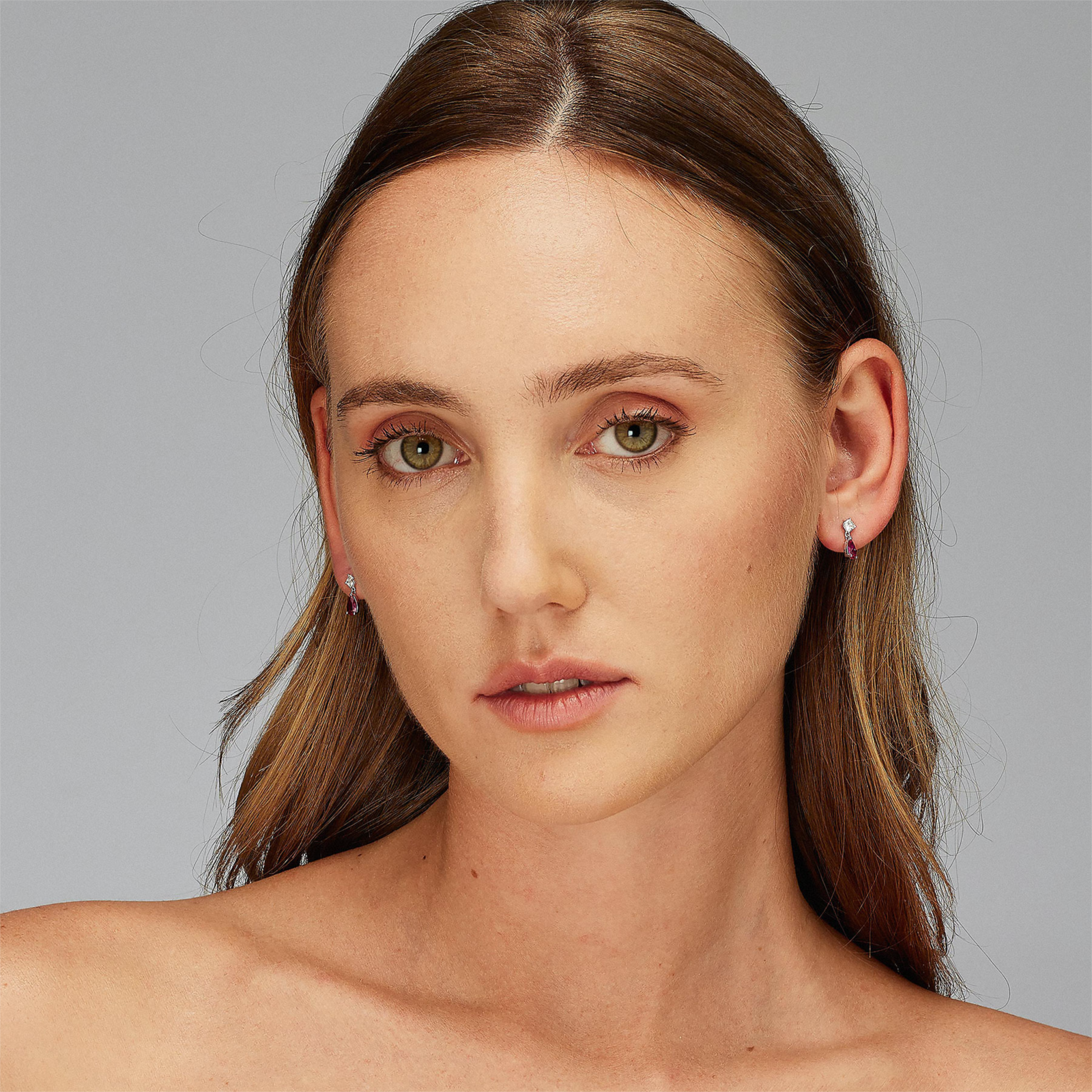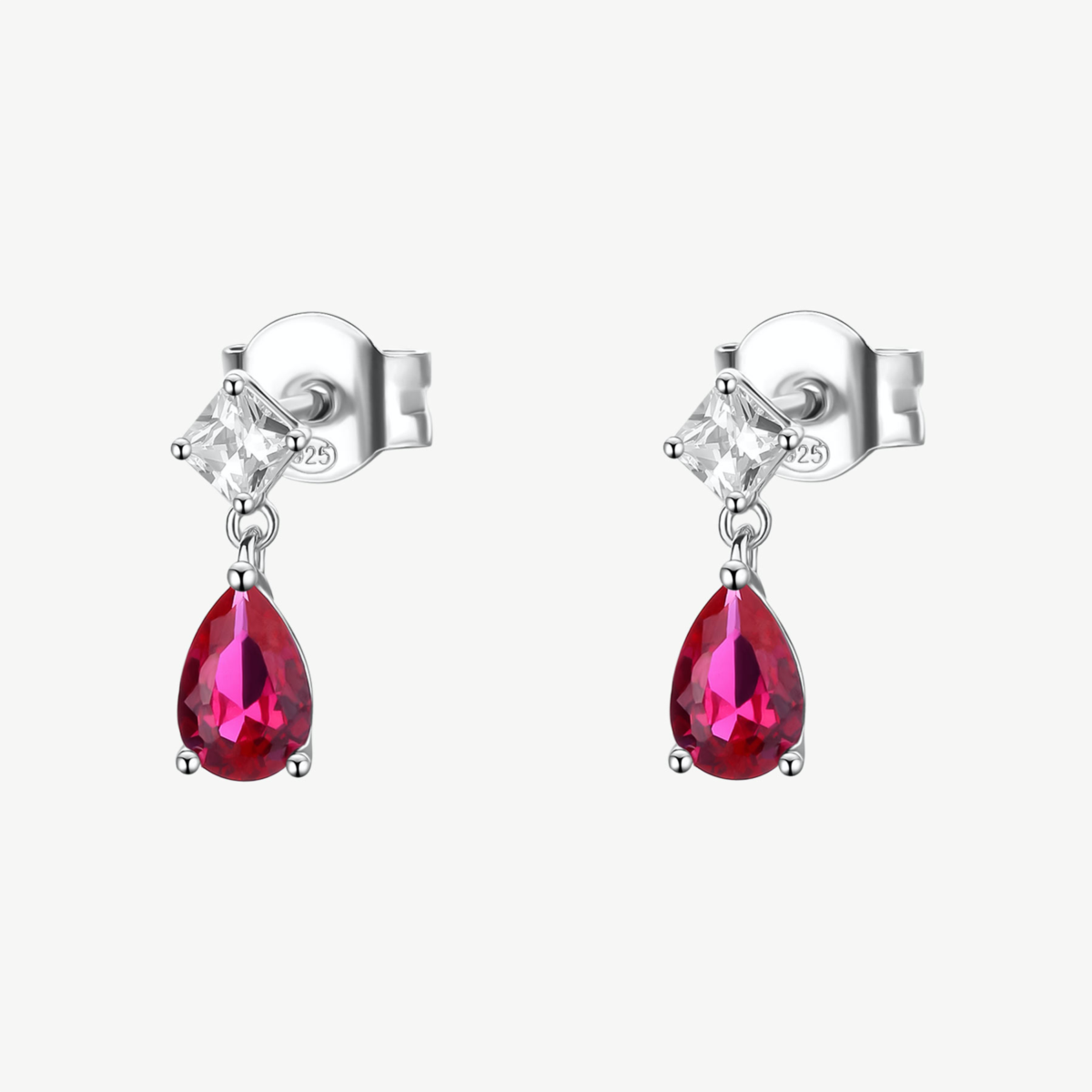 Orecchini donna brosway, FPR119, collezione fancy, in argento rodiato 925‰ con square cubic zirconia e pear cubic zirconia colore ruby. Misura orecchini:12mm