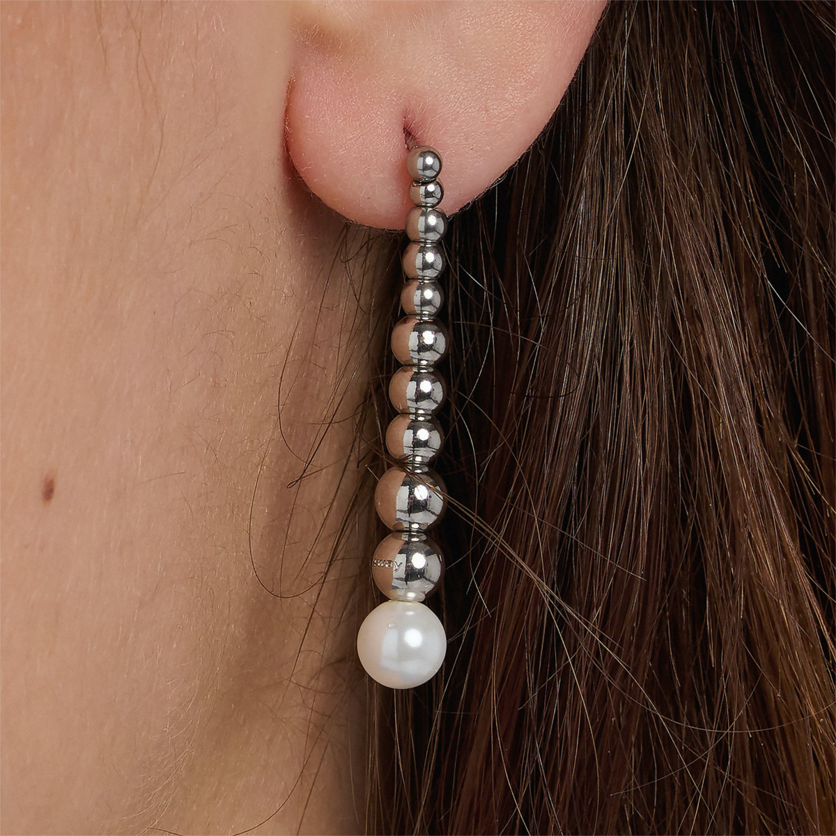 Orecchini donna brosway, BPC26, collezione perfect, in acciaio 316L e perla di conchiglia. Misura orecchini:35mm