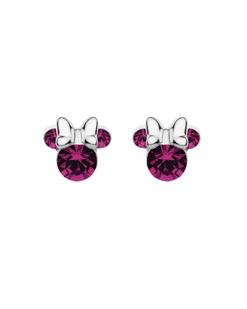 Orecchini bambina disney, ES00028SFEBL.CS, collezione mickey mouse, in argento 925 rodiato impreziositi da zirconi color ametista e da un fiocchetto, segno distintivo di Topolina.