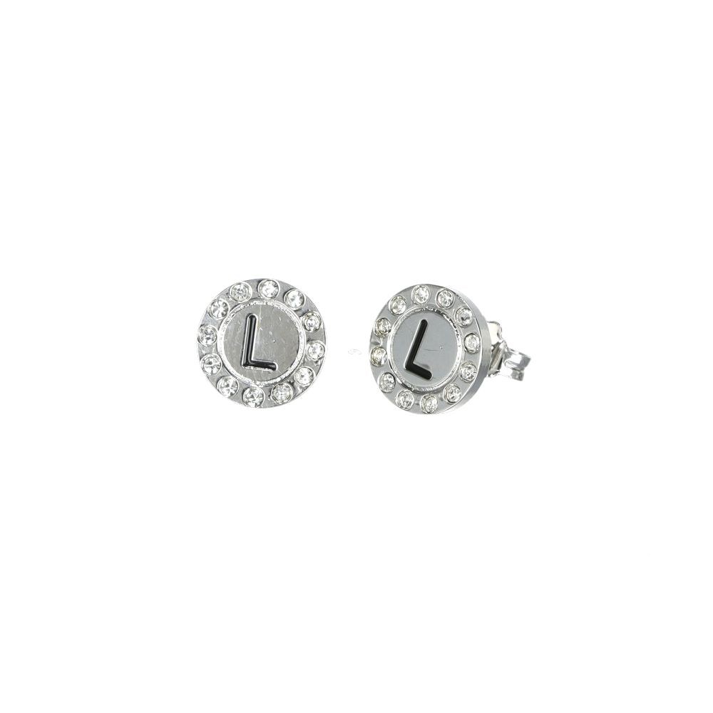 Orecchini dvccio donna, Zxorloblux, collezione autunno inverno, in argento 925 con zirconi e lettera L