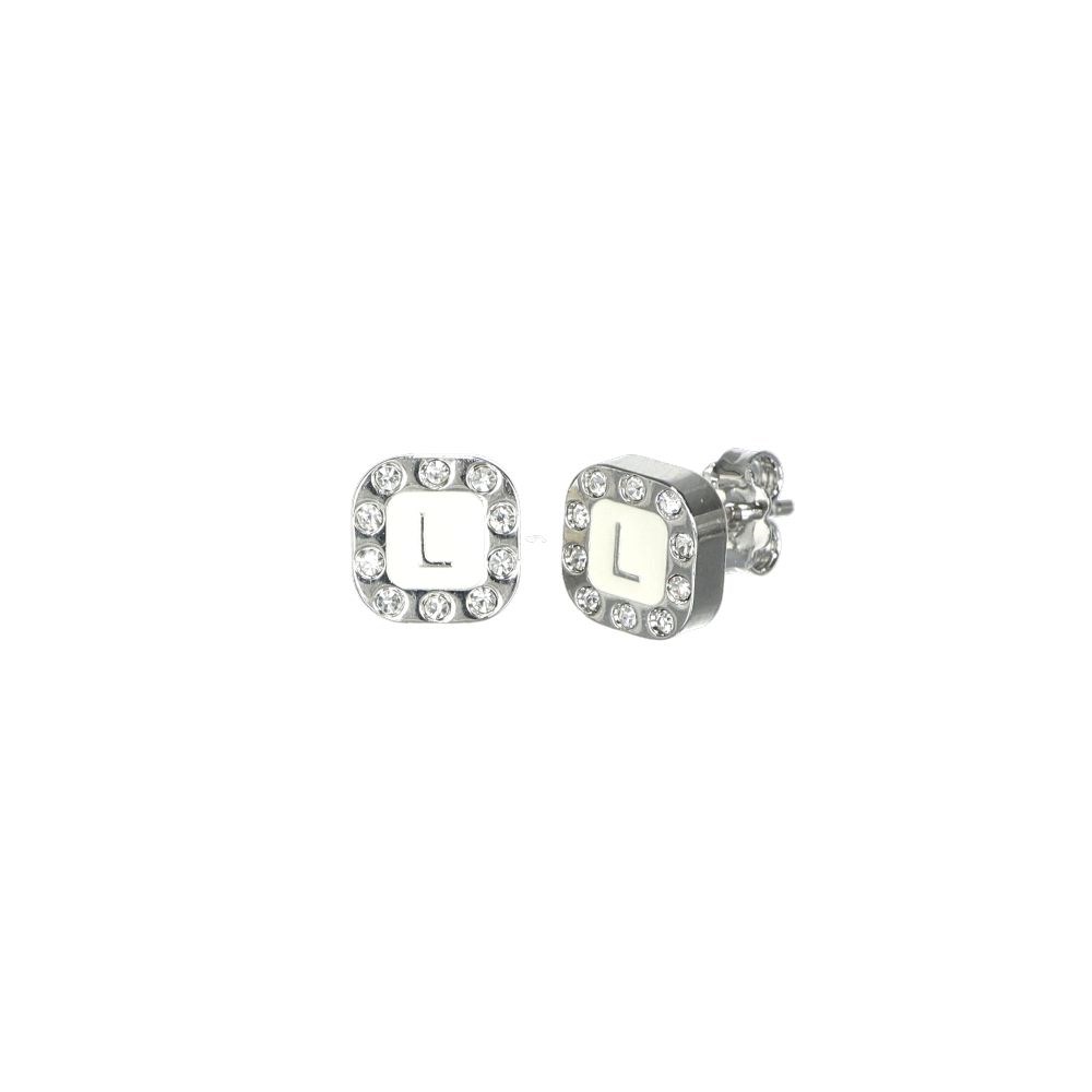 Orecchini dvccio donna, Zxoquad, collezione autunno inverno, in argento 925 con zirconi e lettera L
