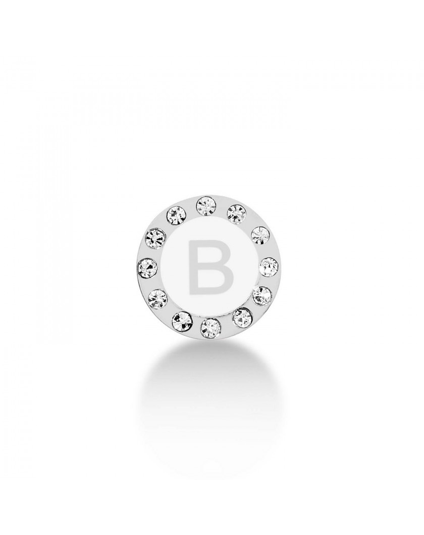 Orecchini donna dvccio, Zxomicro/w/b, collezione petit trésors, in ottone rodiato con zirconi, lettera b in smalto bianco
