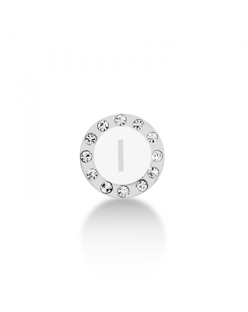 Orecchini donna dvccio, zxomicro/w/i, collezione petit trésors, in ottone rodiato con zirconi, lettera i in smalto bianco