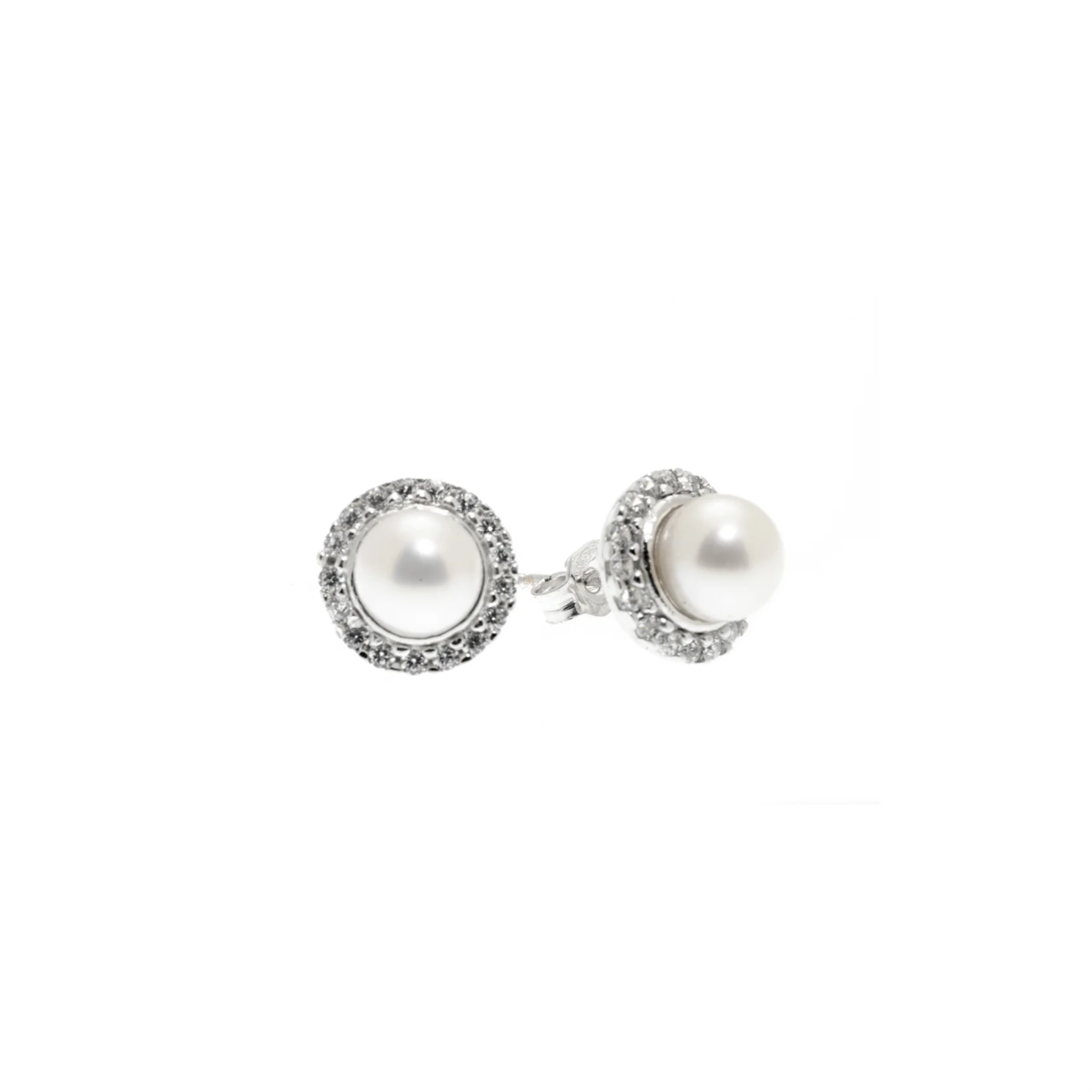 Orecchini donna facco gioielli, 717533, collezione perla d'oro, in oro bianco 18kt con zircone e perle