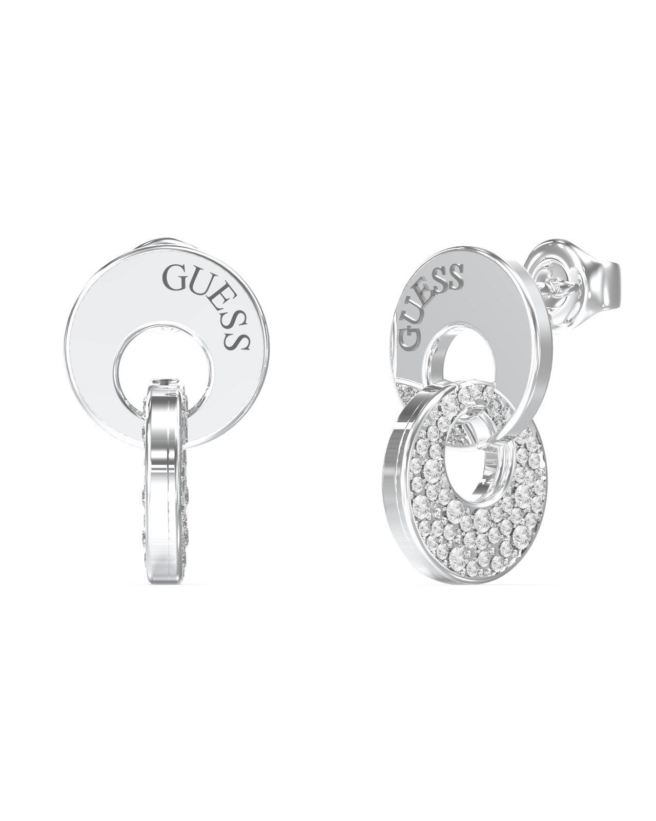 Orecchini donna guess, JUBE05221JWRH, collezione blooming summer, in acciaio rodiato con cristalli bianchi.