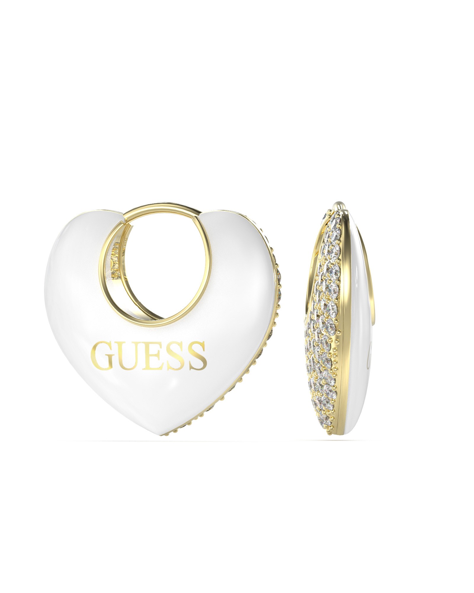 Orecchini donna guess, JUBE05206JWYG, collezione crazy in love, in acciaio dorato con cristalli e smalto bianco