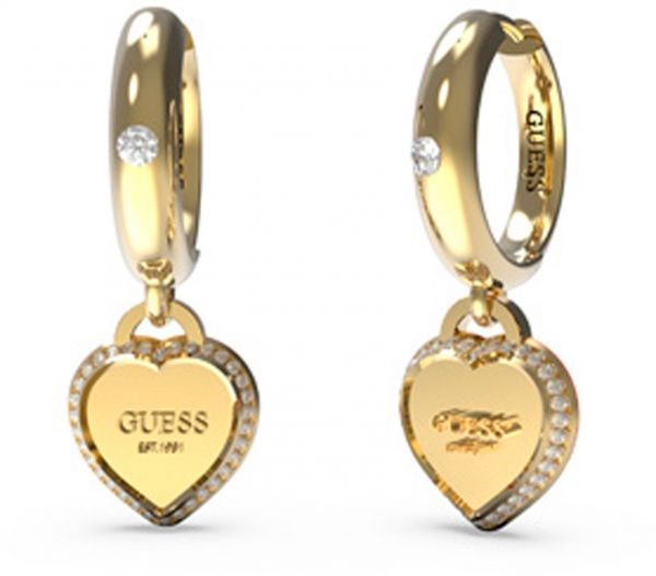 Orecchini donna guess, UBE01426YG, collezione falling in love, in acciaio dorato e cristalli