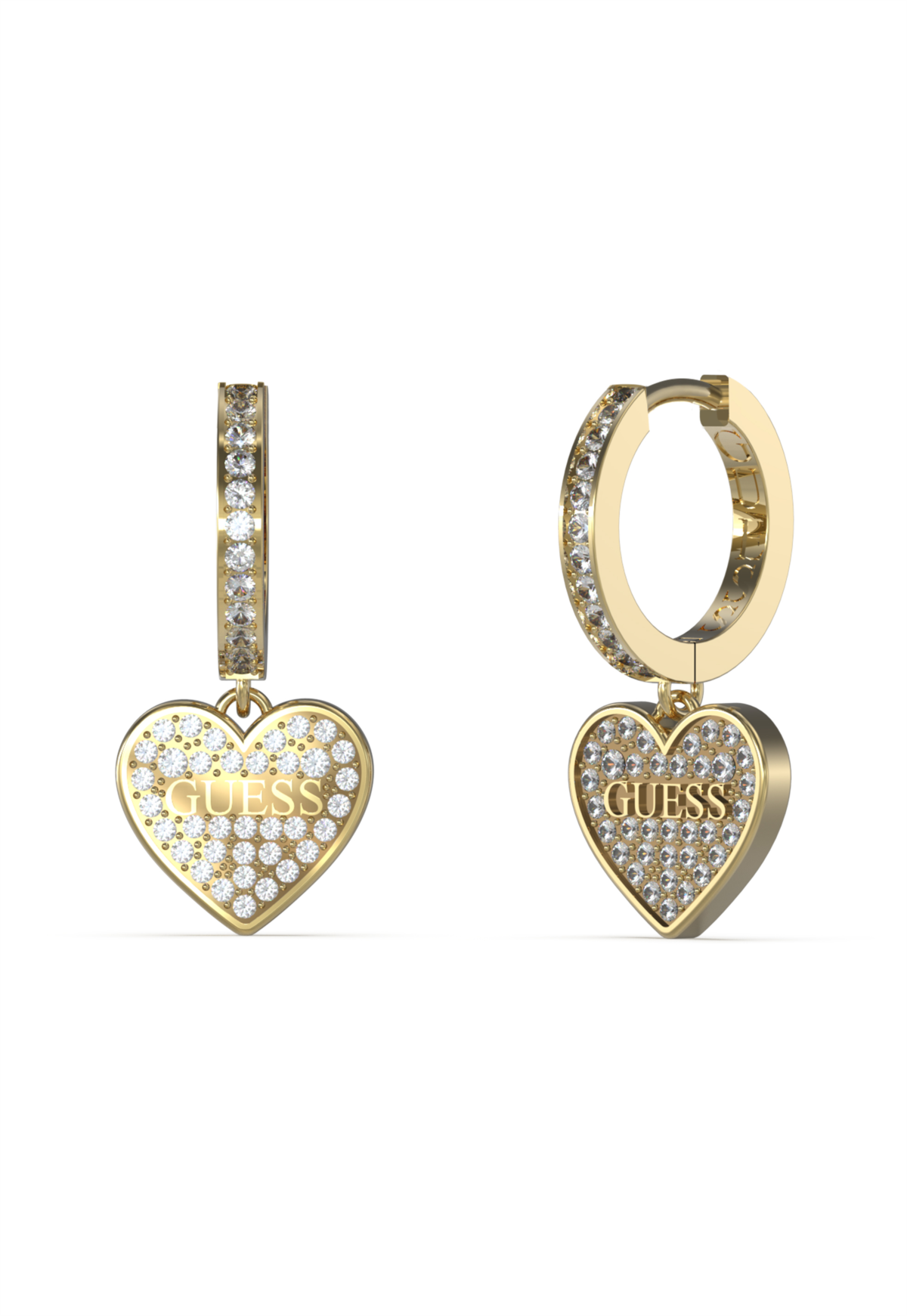 Orecchini donna guess, UBE03136YG, collezione huggie me, in acciaio dorato e cristalli