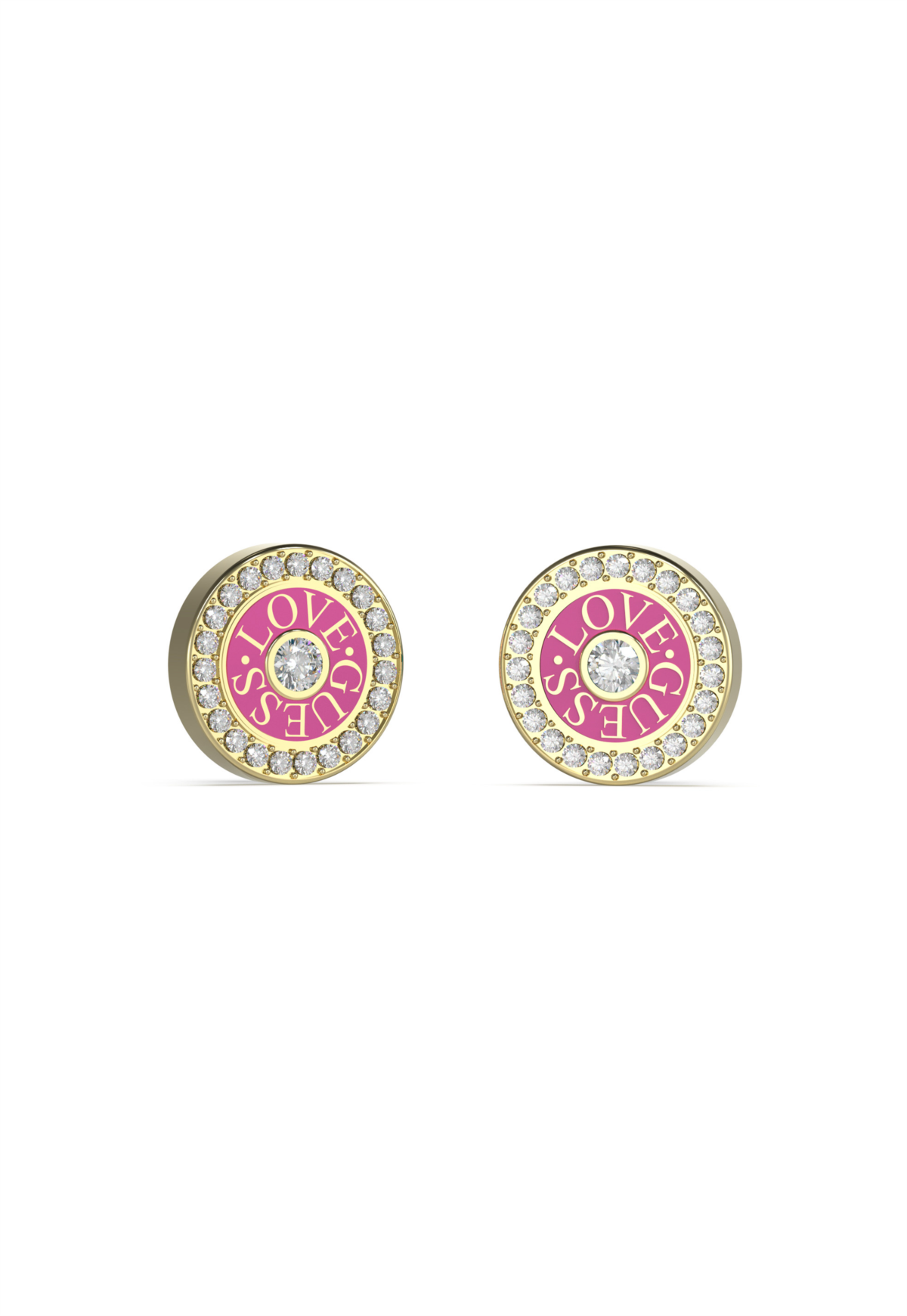 Orecchini donna guess, UBE04081YGFC, collezione lovely guess, in acciaio dorato con cristalli e smalto