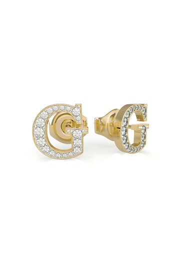 Orecchini donna guess, UBE02170YG, collezione studs party, in acciaio dorato e cristalli