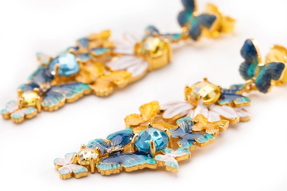 Orecchini donna isola bella, 20001336, collezione aurora, in argento 925 dorato con zirconi e smalto, Lunghezza 5 cm Larghezza 2 cm