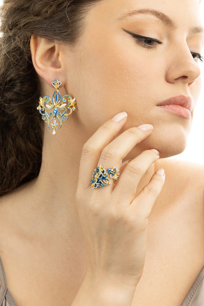 Orecchini donna isola bella, 20001344, collezione decori, in argento 925 placcato oro e smalti Gioielli artigianali, i nostri, che parlano di artigiani che plasmano la materia dando forma a piccole opere d’arte in ceramica famose in tutto il mondo.