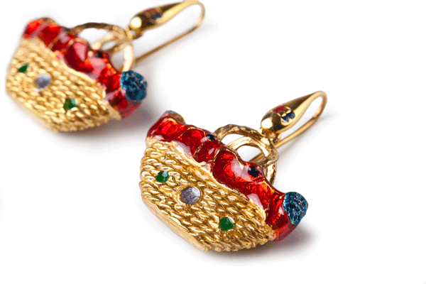 Orecchini isola bella, coffa, in Orecchini in argento 925, placcato oro e smalti.20000194La coffa è simbolo della tradizione rurale siciliana.