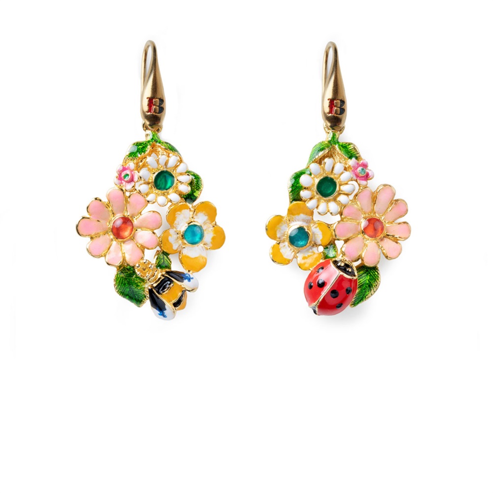 Orecchini donna isola bella, 20000883, collezione orecchioni, ; in argento placcato oro e smalti, dimensione 5 × 2.5 CM. Un tributo alla primavera e al risveglio della natura in un paio di orecchini realizzati a mano.