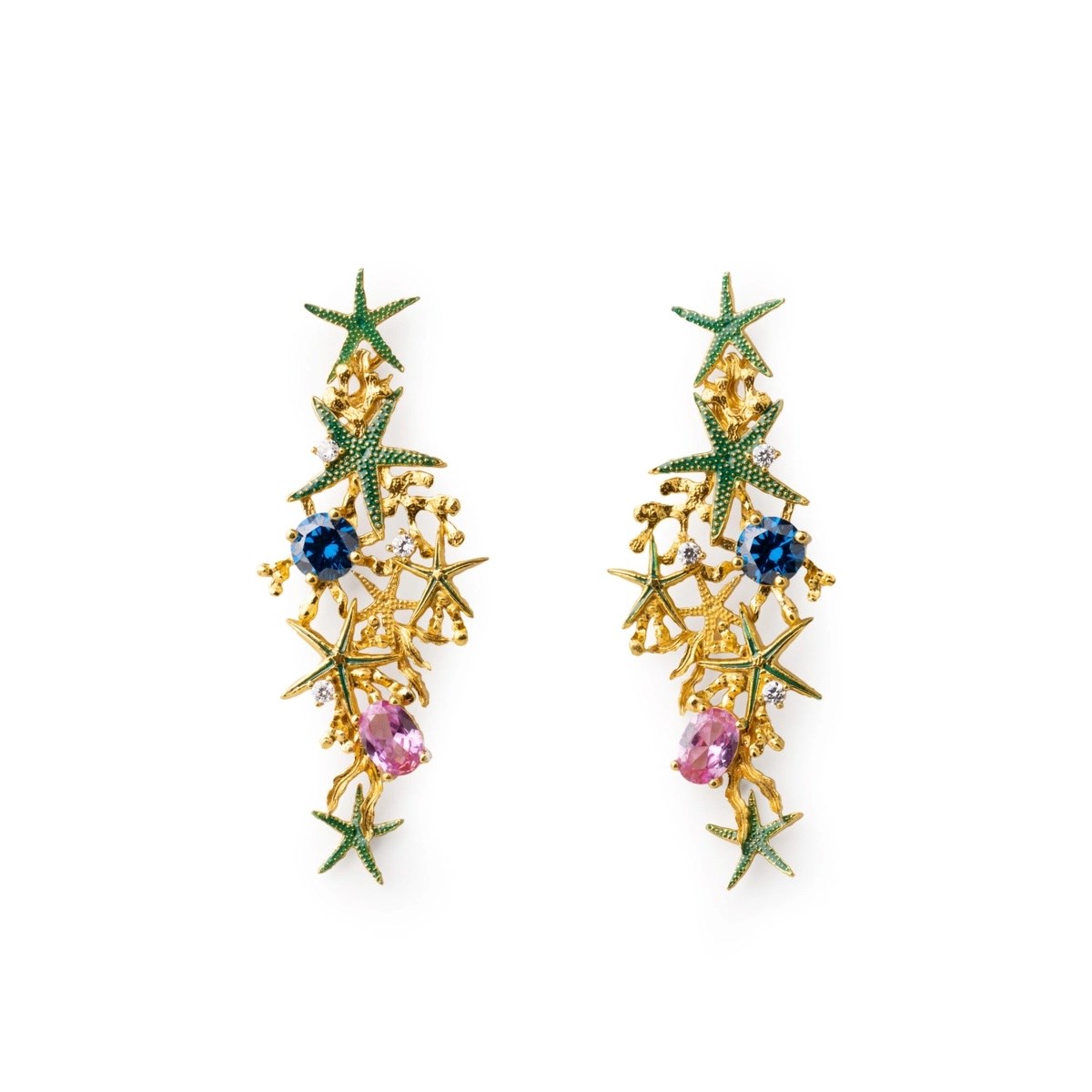 Orecchini donna isola bella, 20001478, collezione stelle di mare, in argento 925 placcato oro, smalti e cubic zirconia. Lunghezza 5.4 cm Larghezza 2.1 cm