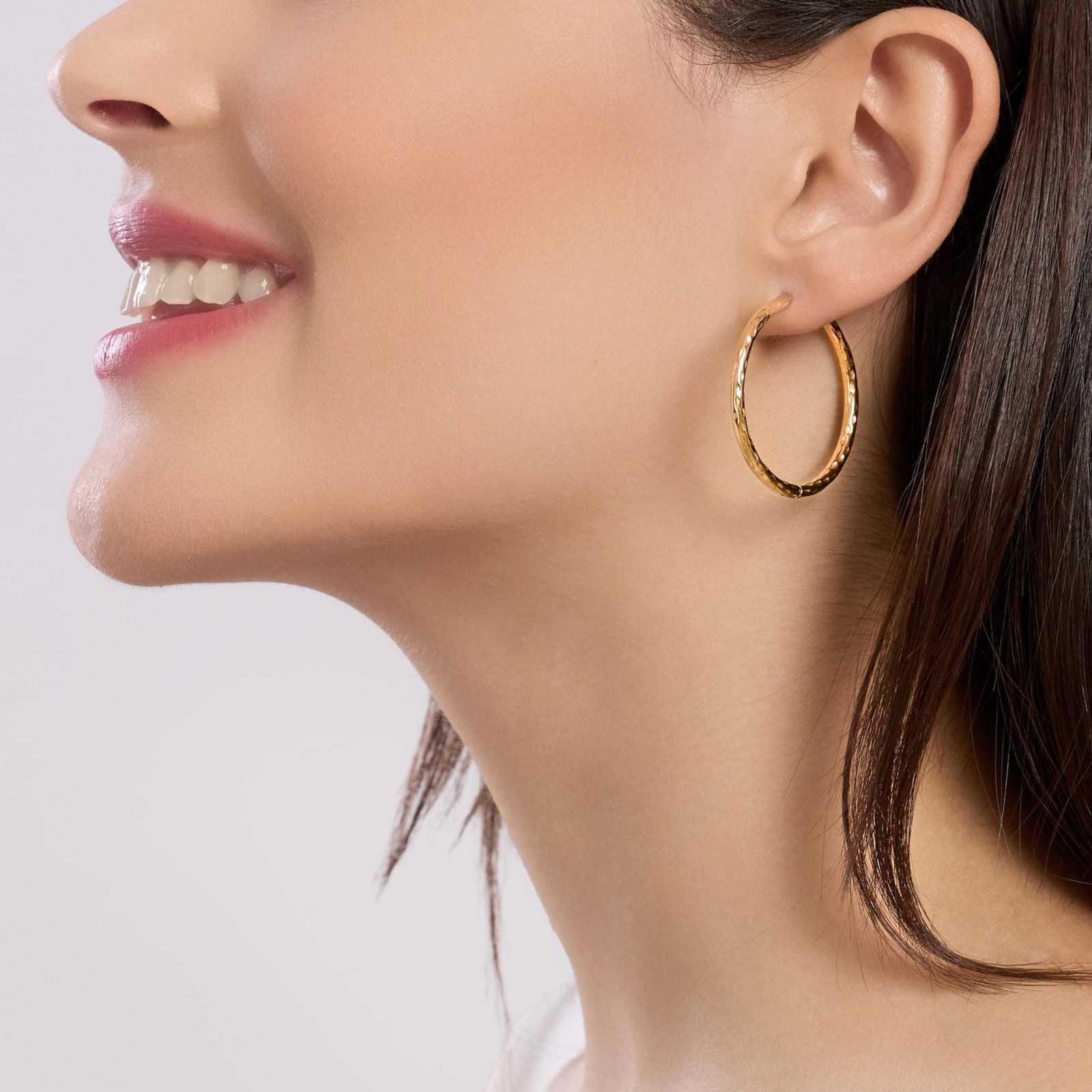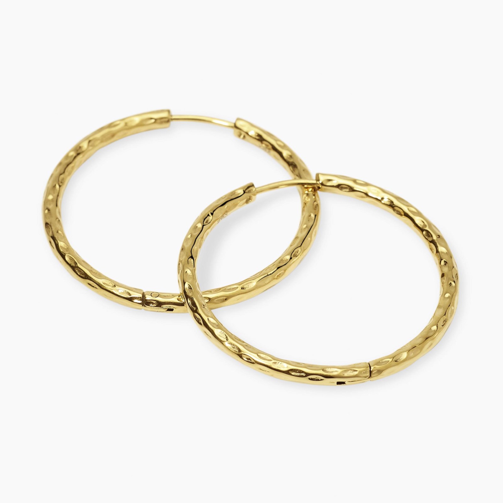 Orecchini donna kidult, 861076, collezione style, a cerchio in acciaio dorato martellato. • Diametro esterno: 35 mm • Diametro interno: 30 mm