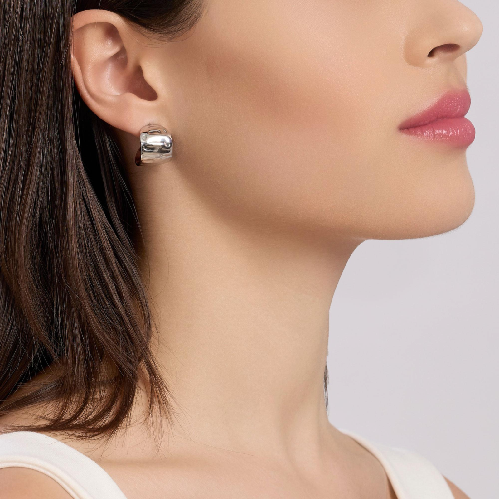 Orecchini donna kidult, 861083, collezione style, semicerchio in acciaio martellato. • Dimensione esterna: 13, 8x17, 8 mm • Dimensione interna: 13, 4x14, 7 mm