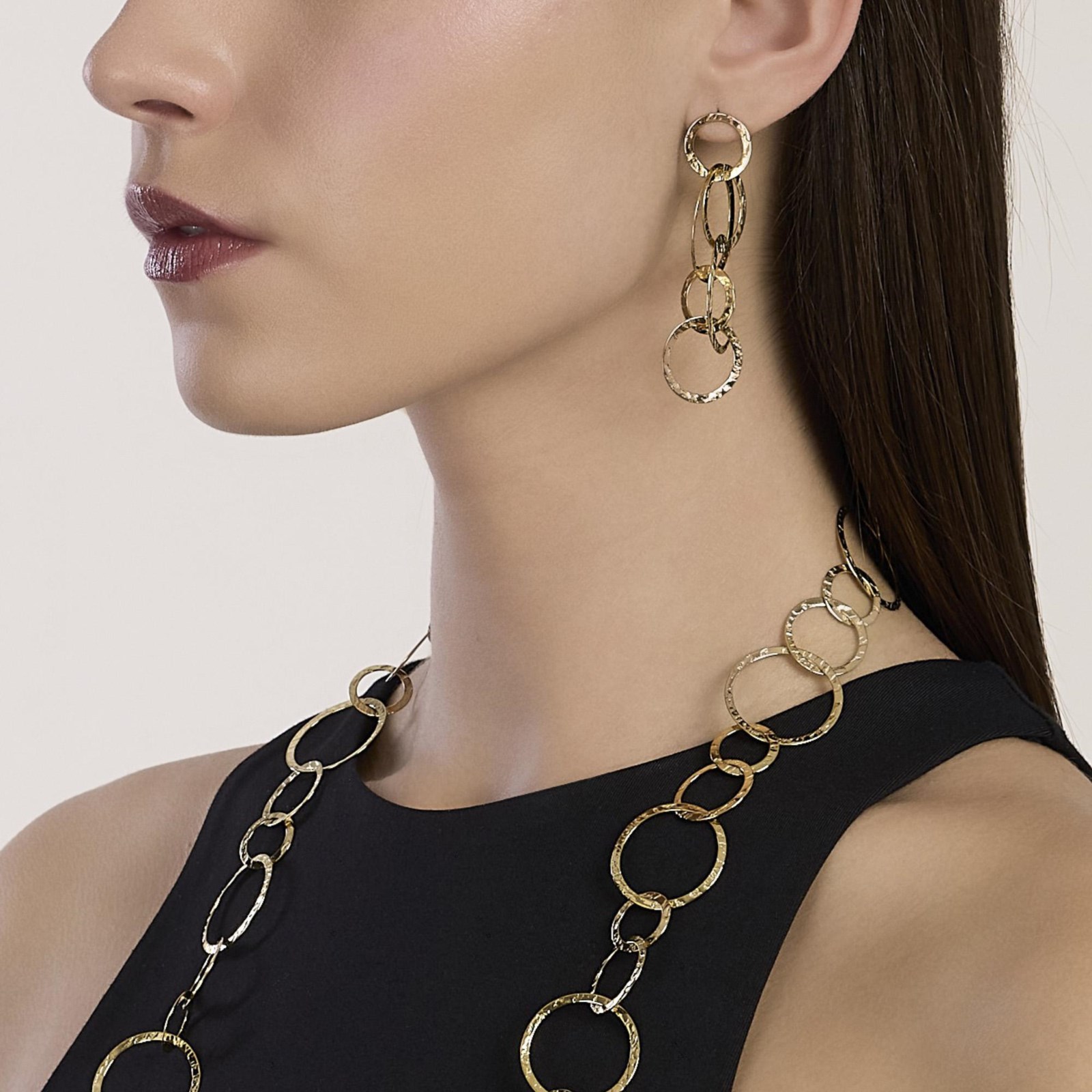 Orecchini donna kidult, 861140, collezione style, in acciaio dorato martellato.