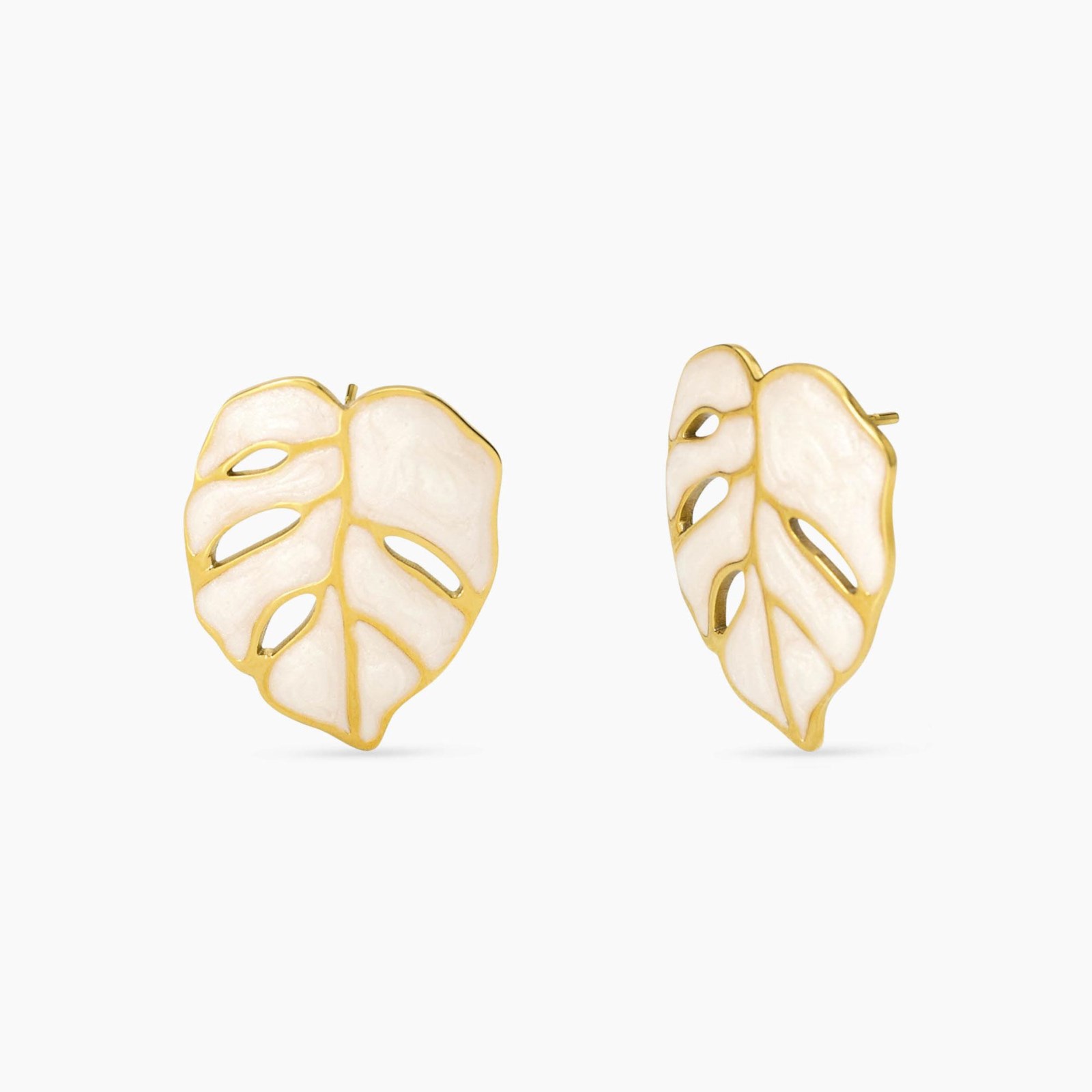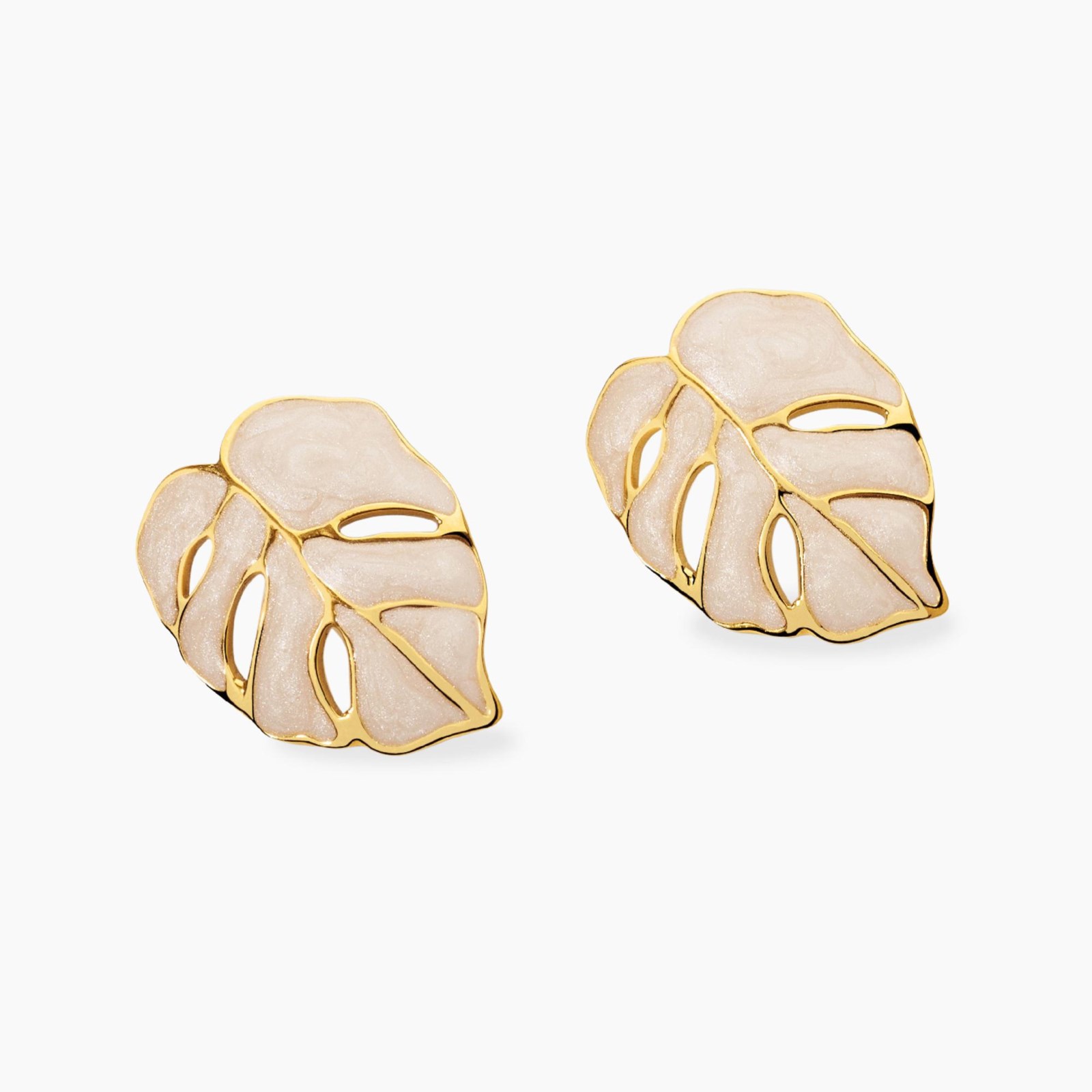 Orecchini donna kidult, 861146, collezione style, in acciaio dorato smaltati bianco.