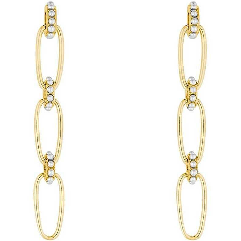 Orecchini donna liu jo, LJ1840, collezione brilliant, in acciaio dorato con cristalli, lunghezza 6, 5cm