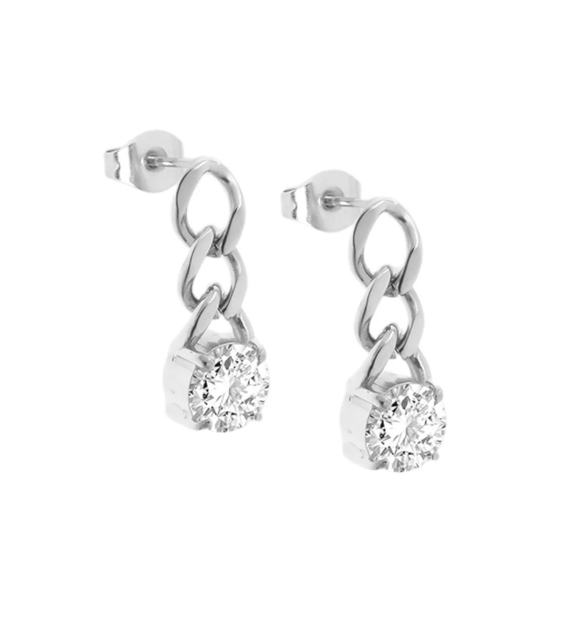 Orecchini donna liu jo, LJ2303, collezione essential, in acciaio pendenti con zirconi. Lunghezza 2 cm. Chiusura a vite.