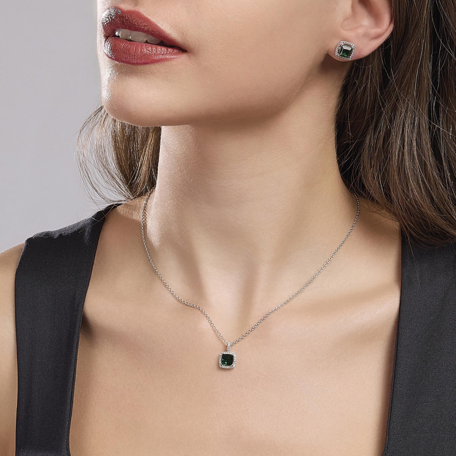 Orecchini donna mabina, 563054, collezione argento donna, in argento con smeraldo sintetico a taglio cuscino antico e zirconi. • Incastonatura delle pietre a griffe • Dimensioni degli smeraldi sintetici: 6 x 6 mm • Materiale: Argento 925, Smeraldo sintetico, Zirconi