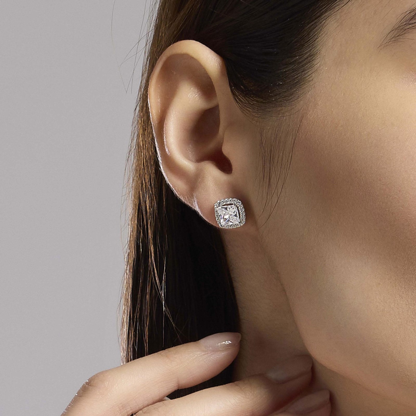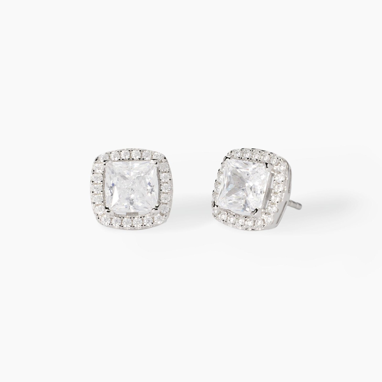 Orecchini donna mabina, 563862, collezione argento donna, in argento e zirconi bianchi taglio princess. • Dimensione zirconi taglio princess: 6x6 mm • Diametro zirconi: 1 mm • Dimensione orecchino esterno: 10x10 mm