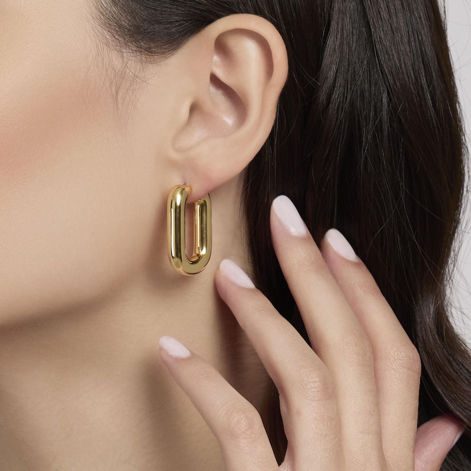 Orecchini donna mabina, 563930, collezione argento donna, in argento placcato oro 18K. • Dimensione orecchino: 29, 4x20, 3 mm • Dimensione interna: 8, x19 mm • Materiale: Argento 925 • Finitura: Placcatura oro 18K