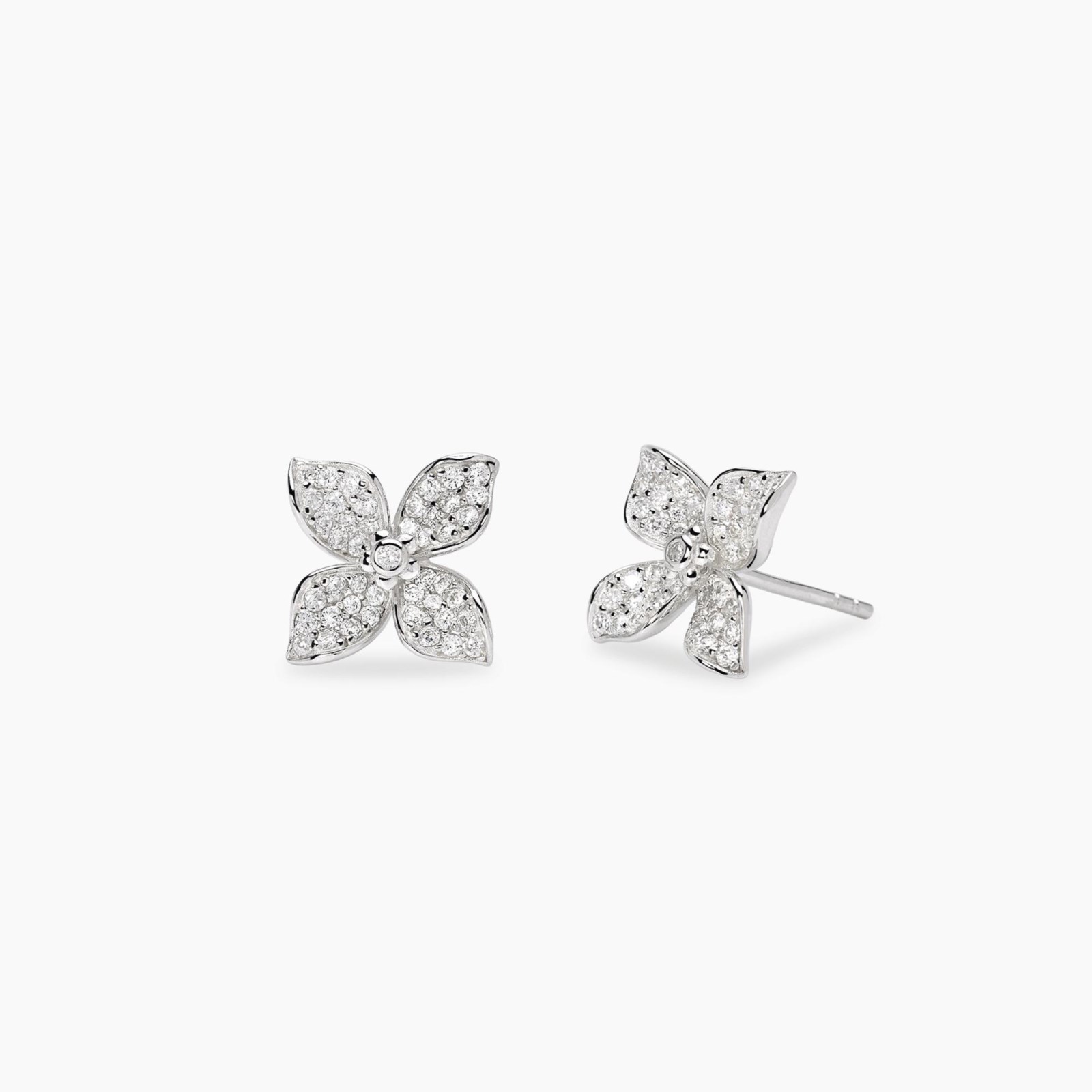 Orecchini donna mabina, 563983, collezione argento donna, in argento rodiato con fiore in zirconi bianchi.