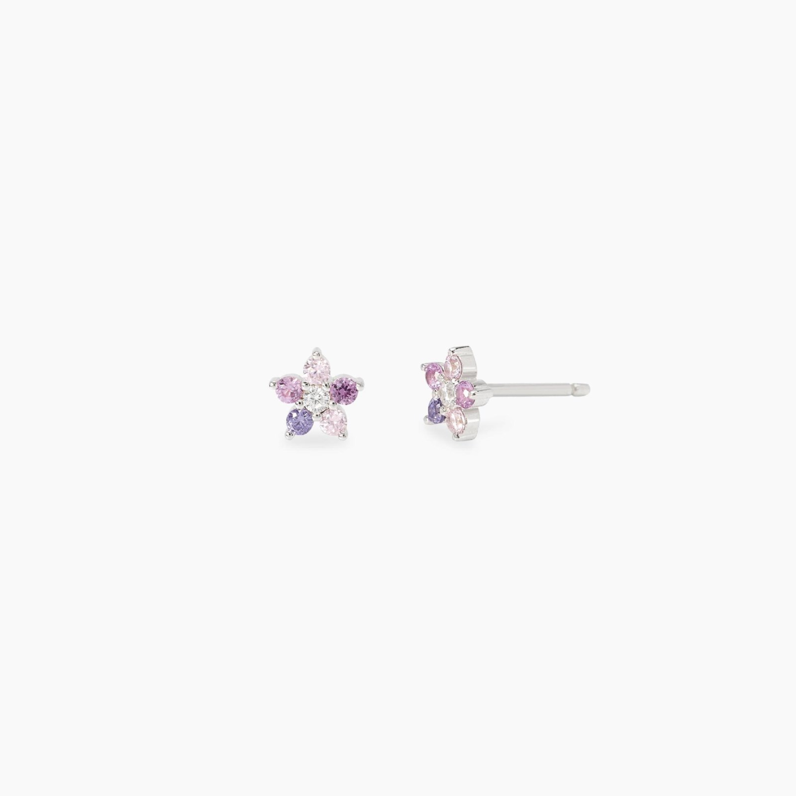 Orecchini bimba mabina, 563958, collezione argento junior, in argento rodiato con fiore in tormaline rosa sintetiche e zirconi.