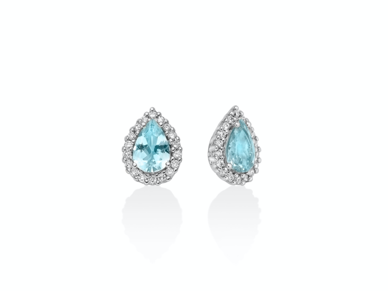 Orecchini donna miluna, Erd2618, collezione acquamarina. Oro 750/1000 Nr 36 Diamanti naturali Pt.tot 21, 6 Col.G Pur.SI Taglio Brillante Rotondo Nr 2 Acquamarina naturale Goccia mm 7x5 Ct 1, 16
