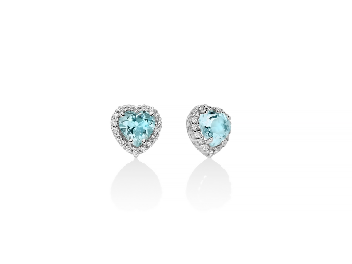Orecchini donna miluna, ERD2840, collezione acquamarina Oro 750/1000 Nr 36 Diamanti naturali Pt.tot 14, 4 Col.G Pur.SI Taglio Brillante Rotondo Nr 2 Acquamarine naturali Cuore Taglio Sfaccettato mm 5x5 Ct 0, 72