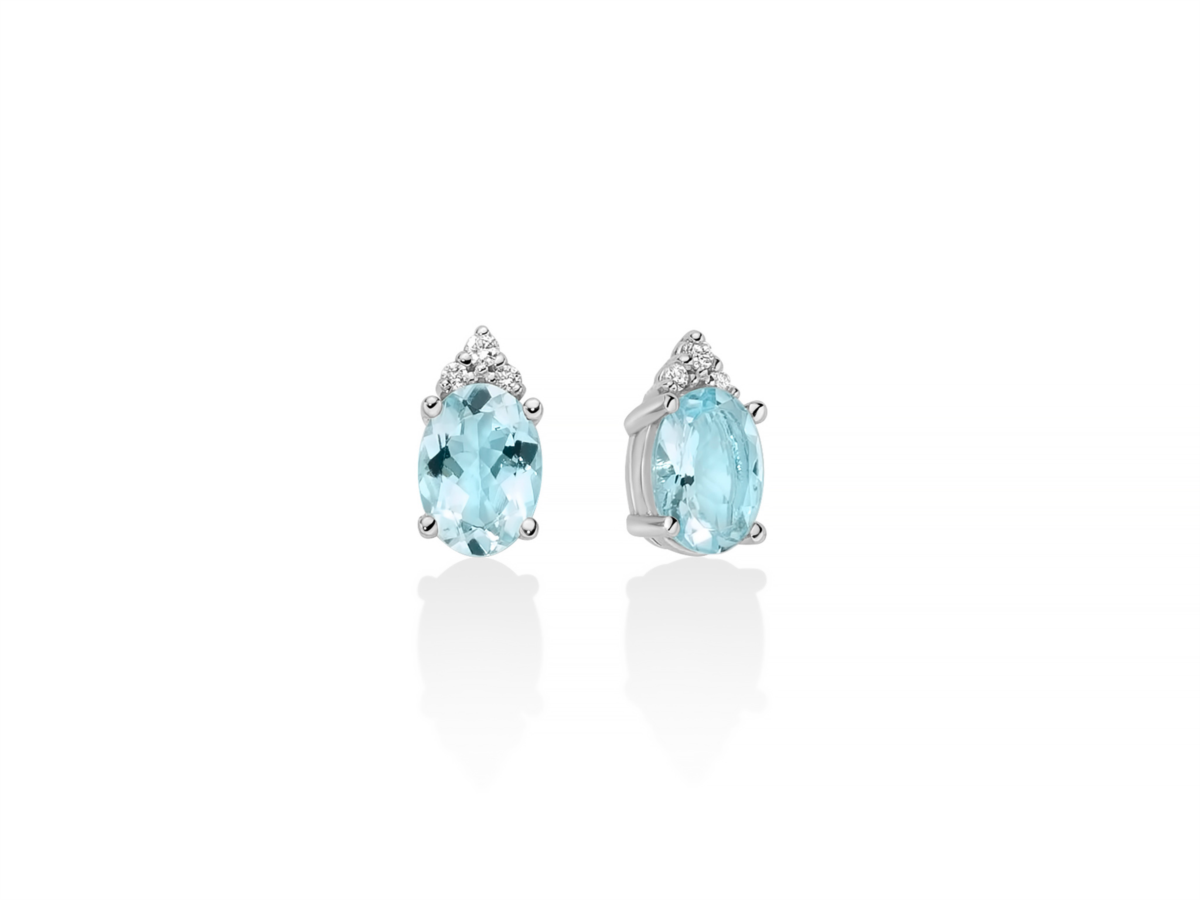 Orecchini donna miluna, ERD2845, collezione acquamarina, Oro 750/1000 Nr 6 Diamanti naturali Pt.tot 4, 8 Col.G Pur.SI Taglio Brillante Rotondo Nr 2 Acquamarine naturali Ovale mm 7x5 Ct 1, 34