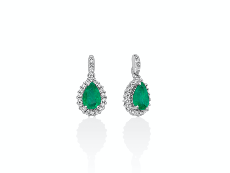 Orecchini donna miluna, Erd2626, collezione gemme preziose. Oro 750/1000 Nr 40 Diamanti naturali Pt.tot 20 Col.G Pur.SI Taglio Brillante Rotondo Nr 2 Smeraldo naturale Goccia mm 6x4 Ct 0, 7