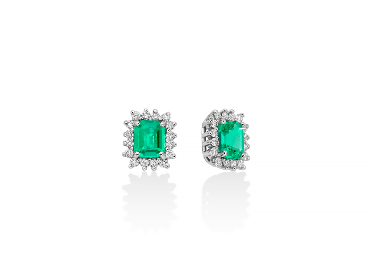 Orecchini donna miluna, ERD2707, collezione gemme preziose Oro 750/1000 Nr 32 Diamanti naturali Pt.tot 23, 04 Col.G Pur.SI Taglio Brillante Rotondo Nr 2 Smeraldi naturali Ottagonale mm 5x4 Ct 0, 8