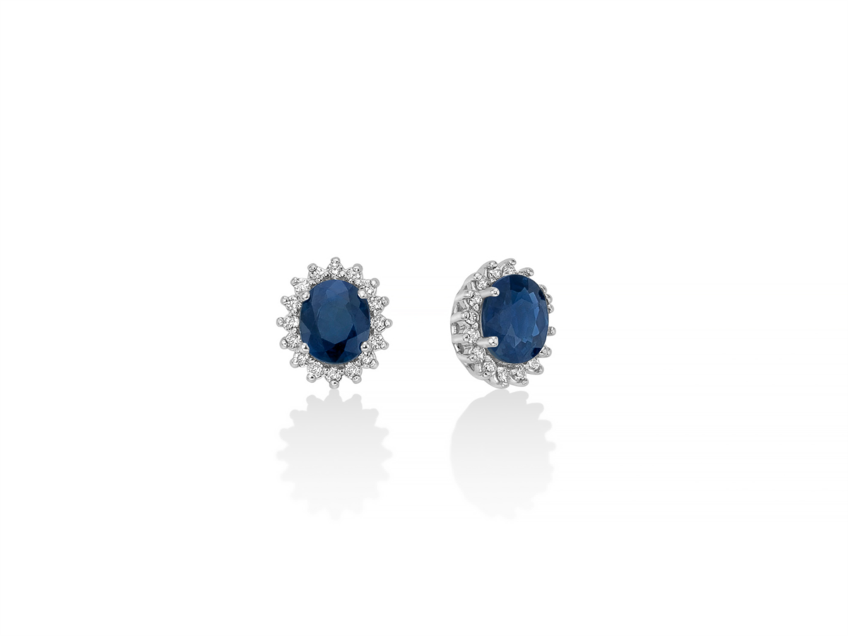 Orecchini donna miluna, ERD2720, collezione gemme preziose Oro 750/1000 Nr 32 Diamanti naturali Pt.tot 12, 8 Col.G Pur.SI Taglio Brillante Rotondo Nr 2 Zaffiri naturali Col.