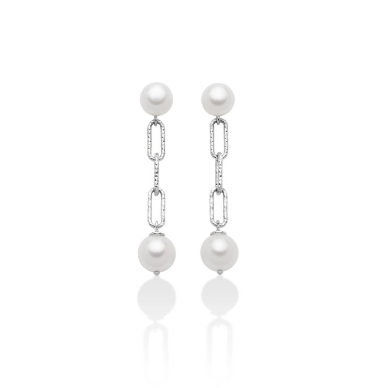 Orecchini donna miluna, Per2511, collezione miss italia, in argento 925, perle coltivate bianche 7, 5/8mm e perle coltivate bianche a bottone 6, 5/7mm con speciale lavorazione diamantata