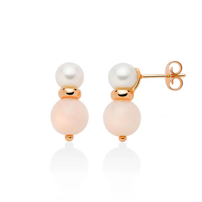 Orecchini donna miluna, PER2731, collezione i segreti della natura, in Argento 925 color Oro Rosa , 2 Sfere Giada color Pesca da 8 mm e 2 Perle vere R da 6, 5-7 mm.