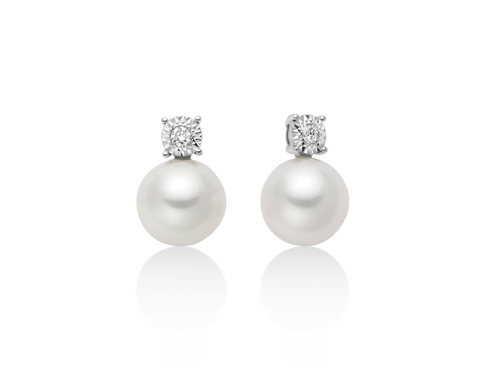Orecchini donna miluna, Per2356, collezione Orecchini Di Perle, in oro bianco 750/1000, nr 2 diamanti naturali pt.tot 6, col.g pur.SI, taglio brillante rotondo, nr 2 perle r