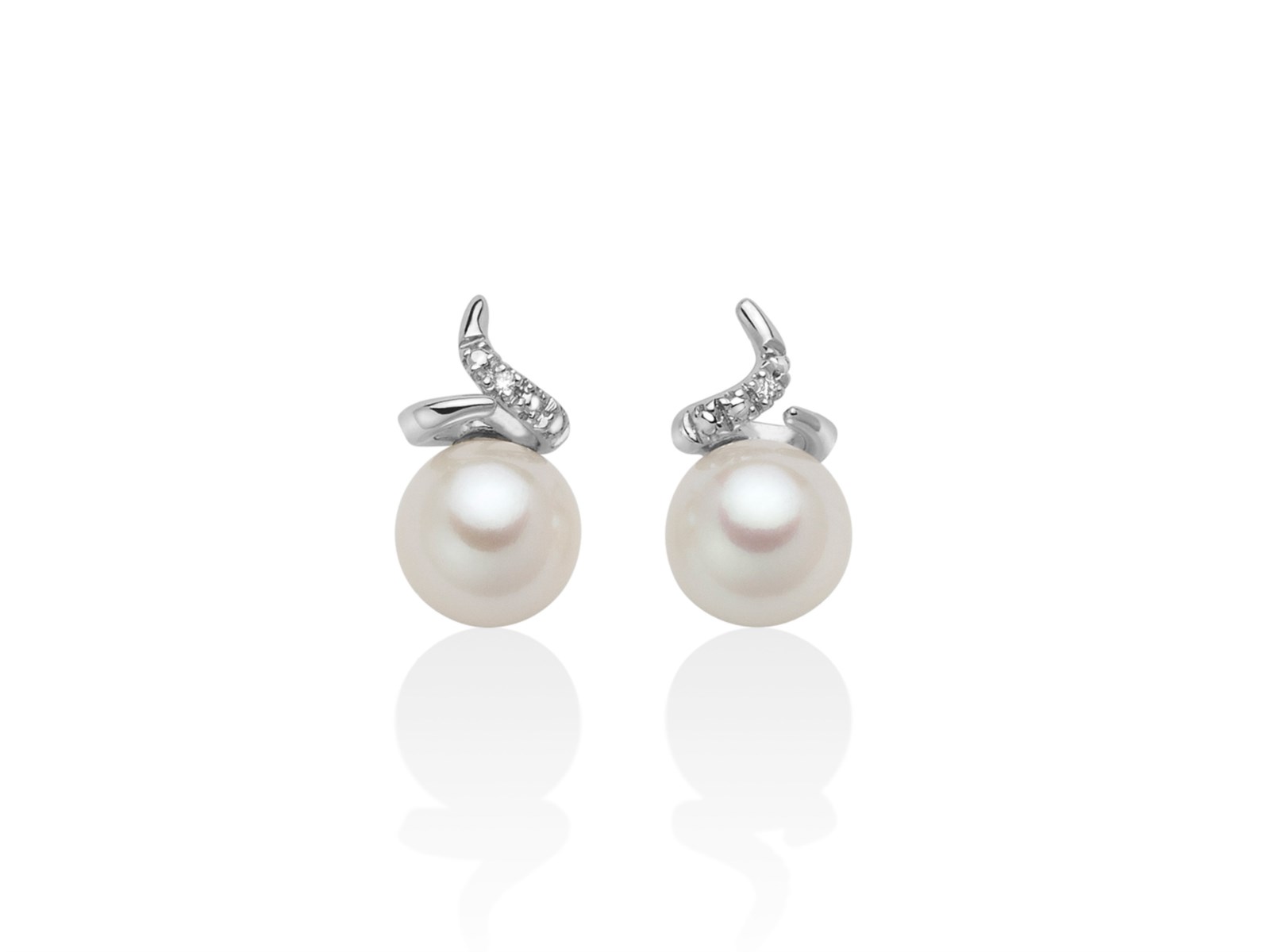 Orecchini donna miluna, PER2565, collezione orecchini di perle Oro 750/1000 Nr 2 Diamanti naturali Pt.tot 0, 8 Col.G Pur.SI Taglio Brillante Rotondo Nr 2 Perle vere R Col.