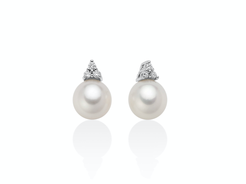 Orecchini donna miluna, Per2591, collezione orecchini di perle. Oro 750/1000 Nr 6 Diamanti naturali Pt.tot 9 Col.G Pur.SI Taglio Brillante Rotondo Nr 2 Perle R Col.