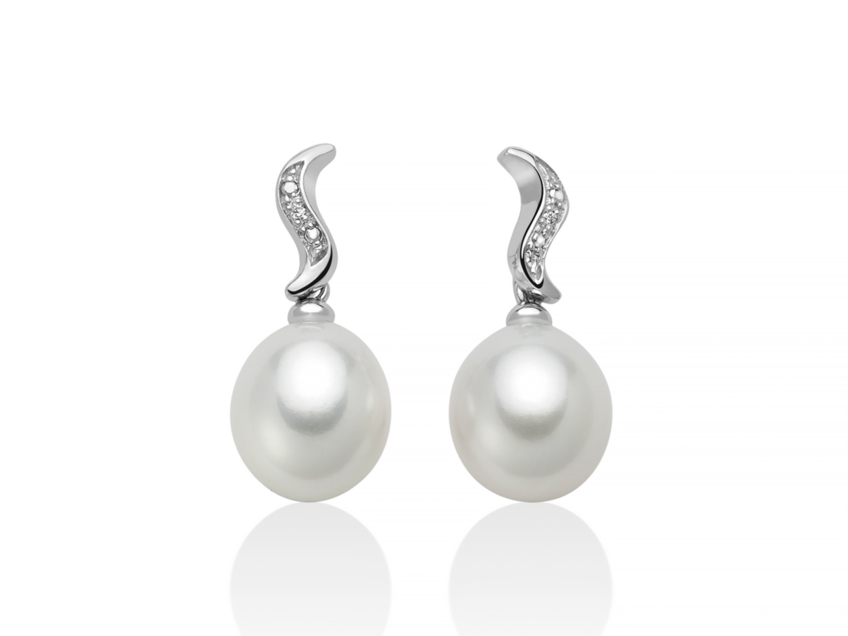 Orecchini donna miluna, PER2642, collezione orecchini di perle Oro 750/1000 Nr 2 Diamanti naturali Pt.tot 0, 8 Col.G Pur.SI Taglio Brillante Rotondo Nr 2 Perle vere VVR drop Col.