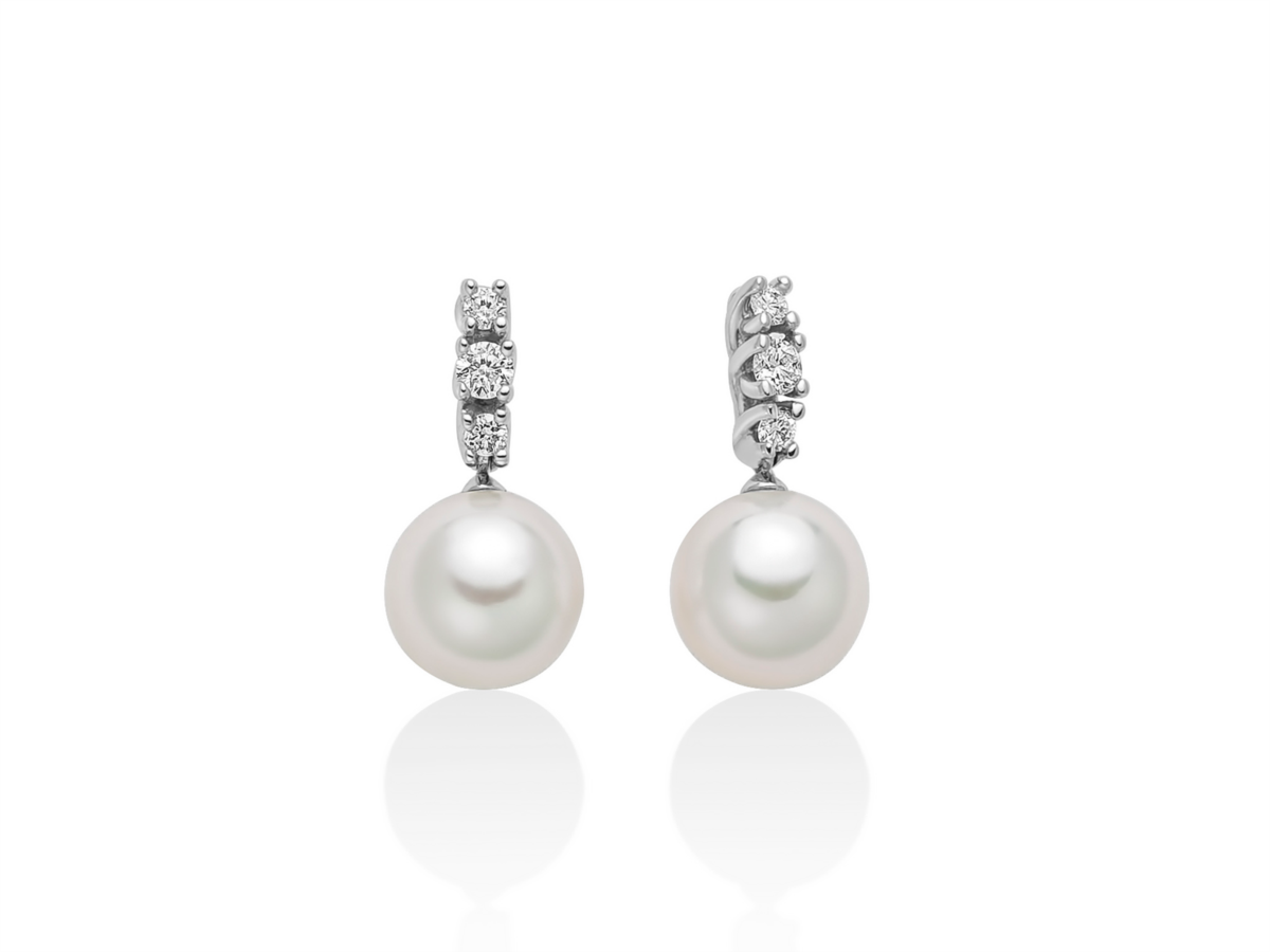 Orecchini donna miluna, PER2694, collezione orecchini di perle Oro 750/1000 Nr 6 Diamanti naturali Pt.tot 15, 2 Col.G Pur.SI Taglio Brillante Rotondo Nr 2 Perle vere Akoya Antiqua Spec.