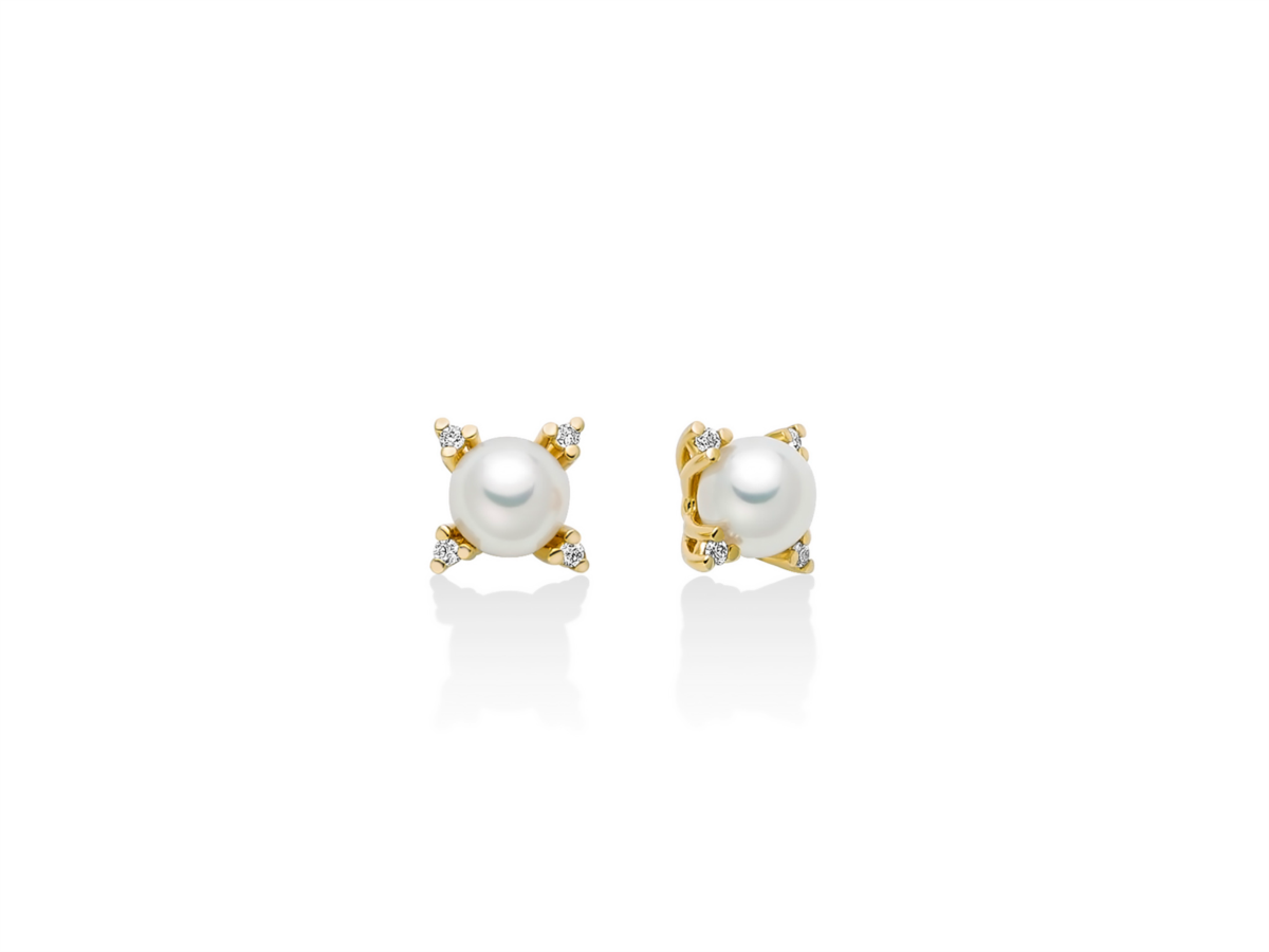 Orecchini donna miluna, PER2724X, collezione perle 375 Oro 375/1000 Nr 8 Diamanti naturali Pt.tot 2, 64 Col.G Pur.SI Nr 2 Perle vere R Col.