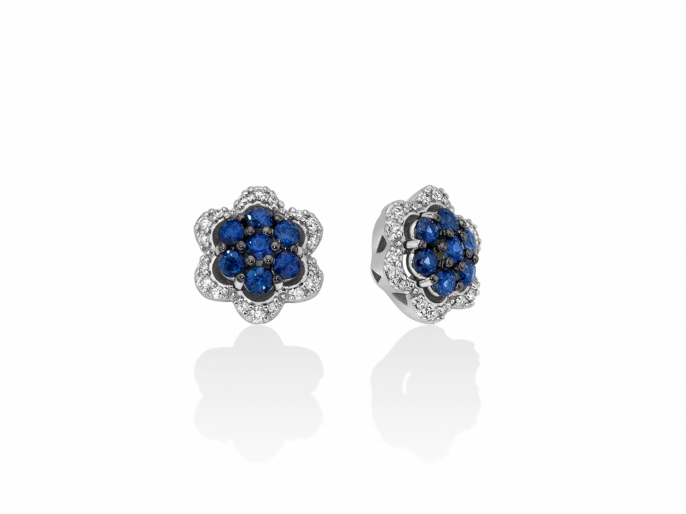 Orecchini donna miluna, ERD2652, collezione premium diamonds, in oro bianco 18kt con diamanti e zaffiri
