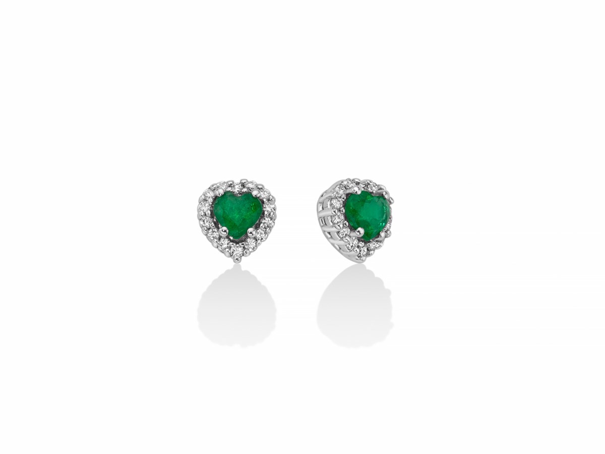 Orecchini donna miluna, ERD2651, collezione premium gemme Oro 750/1000 Nr 28 Diamanti naturali Pt.tot 14 Col.G Pur.SI Taglio Brillante Rotondo Nr 2 Smeraldi naturali Cuore mm 4x4 Ct 0, 46
