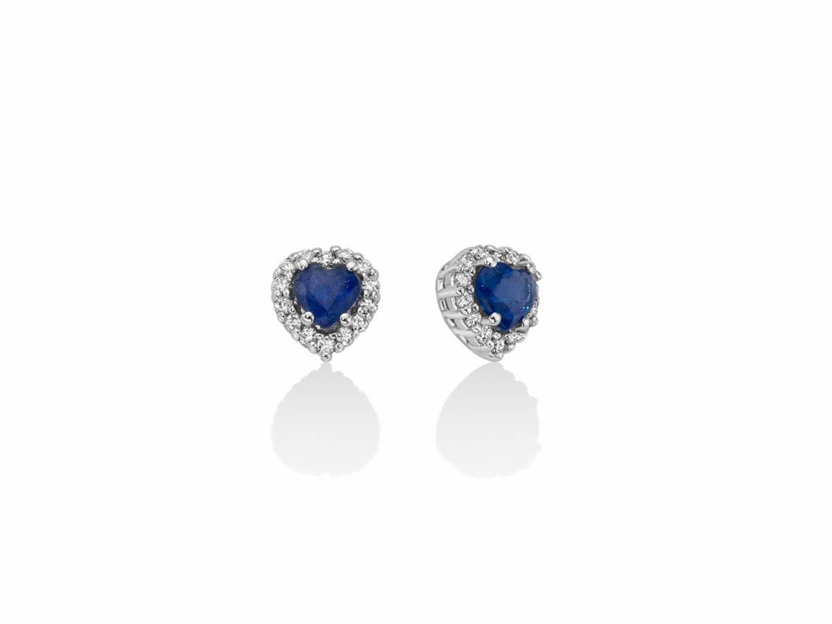 Orecchini donna miluna, Erd2667, collezione premium gemme. Oro 750/1000 Nr 28 Diamanti naturali Pt.tot 14 Col.G Pur.SI Taglio Brillante Rotondo Nr 2 Zaffiro nat.
