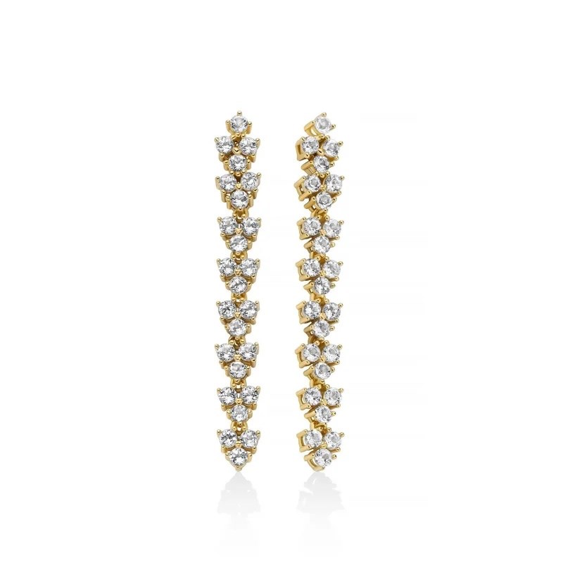 Orecchini donna miluna, ERD3054G, collezione unica neve, in argento 925 dorato e 50 topazi bianchi naturali taglio rotondo 2 ct totali