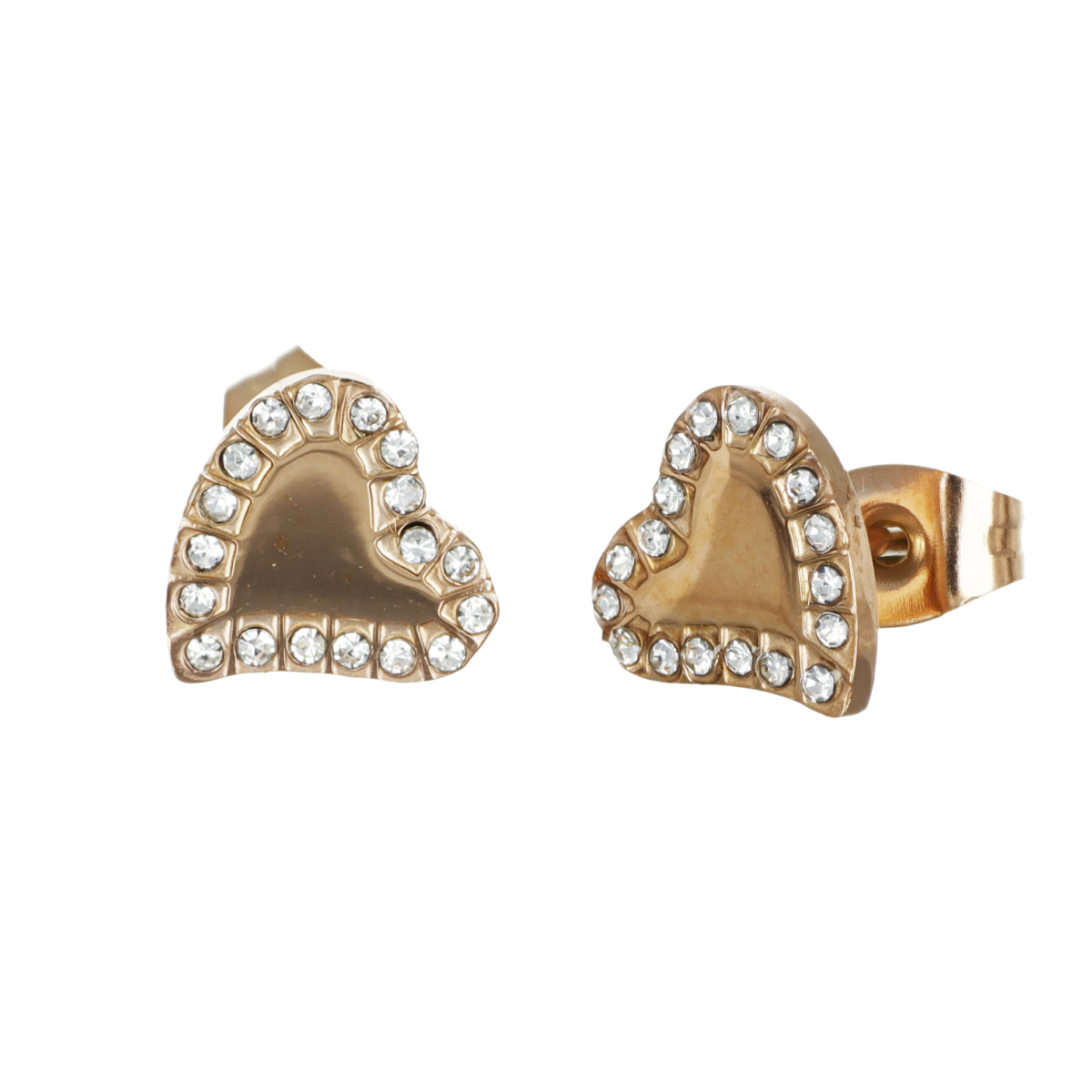 Orecchini donna mya, Rior08, collezione ring of love, in acciaio rosato con strass