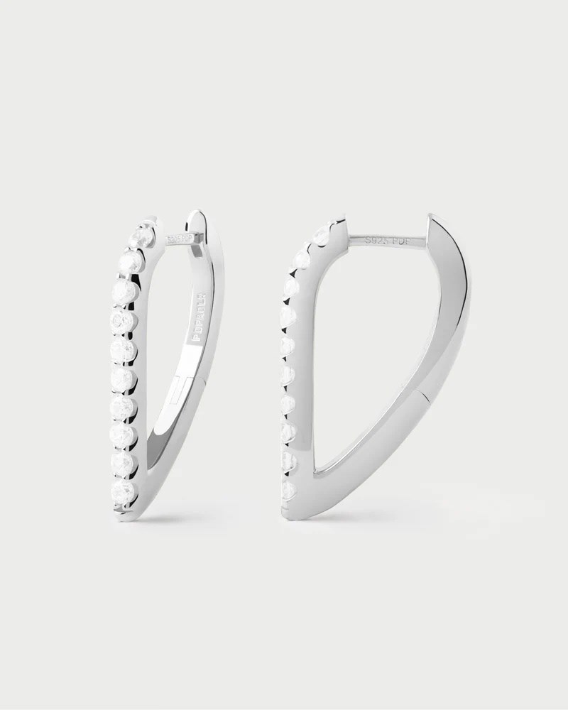 Orecchini donna pdpaola, AR02-G27-U, collezione gloss, in argento con forma ovale e zirconi bianchi Materiale: Argento sterling Finitura: Placcatura in argento rodiato Pietra: Zirconi bianchi Altezza: 22 mm Larghezza: 2 mm Lunghezza: 14 mm Peso: 4, 85 g